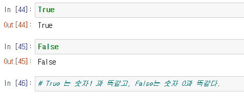- Boolean 은 다음 2가지의 오브젝트로 나타낸다. "False" and "True".