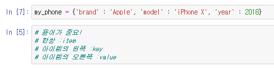 - 키는, 딕셔너리 안에 유일한 값으로 되어 있다. 따라서 키가 같은 값을 가질 수 없다. 그러나 밸류는 같은 값이 여러개 있어도 상관없다.