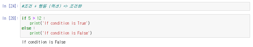 5가 2보다 크면 If condition is True 를 출력하고, 그렇지 않으면, If condition is False를 출력한다.