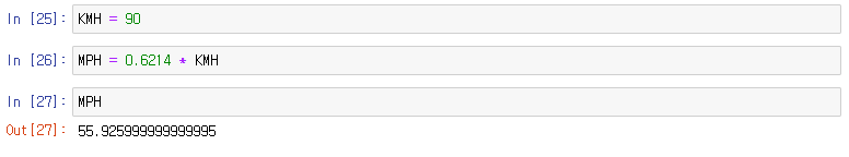 4. 현재 속도가 90 KM/H 다. 이를 MP/H(Miles per hour) 로 계산하는 코드를 작성하세요.