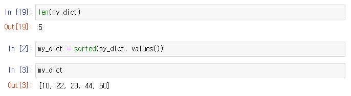 6. 딕셔너리의 길이를 구하고, 나이에 대한 오름차순으로 정렬하세요.