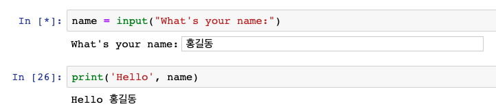 위에서, input 함수 안에, 원하는 문자열을 써주면, 화면에 출력되면서, 유저한테 입력을 받게 된다.