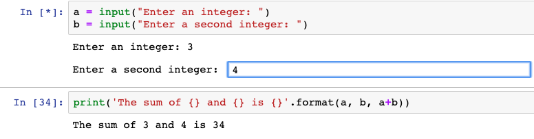 하지만, 아래 코드를 실행하면, 7 이 아니라, 3과 4가 옆에 붙어서 34로 나온다.