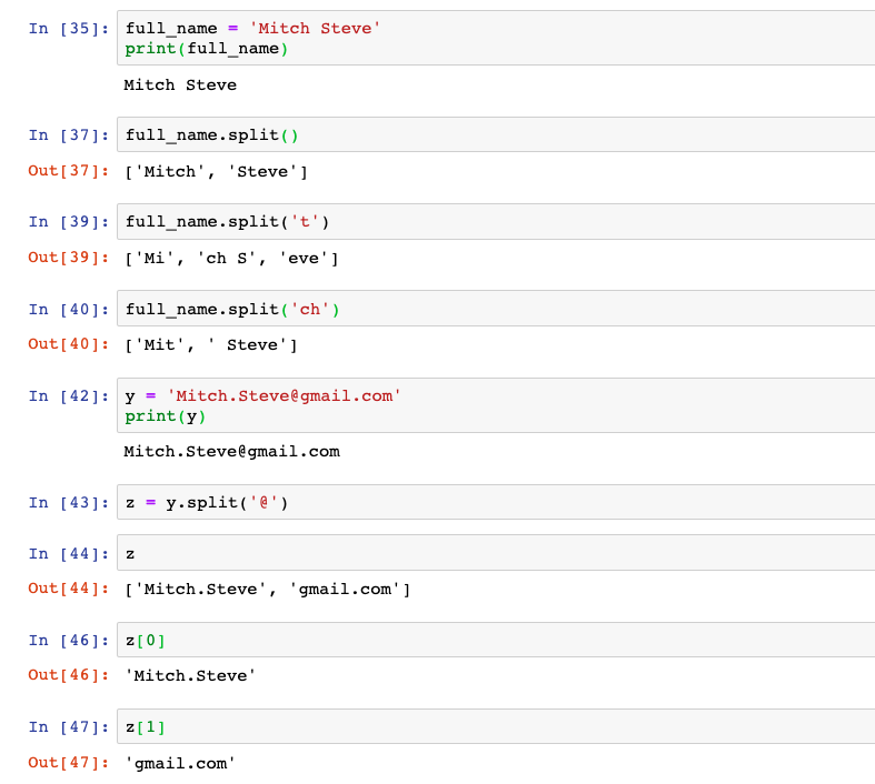 º 아래 예에서, 이메일 주소가 있으면, @로 문자열을 분리해 낼 수 있다. split('@')