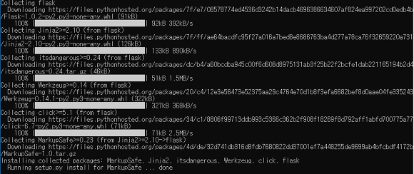 'pip install flask' 명령어를 'cmd(명령 프롬프트)'에 입력하게 되면 아래 그림과 같이 확인할 수 있습니다.