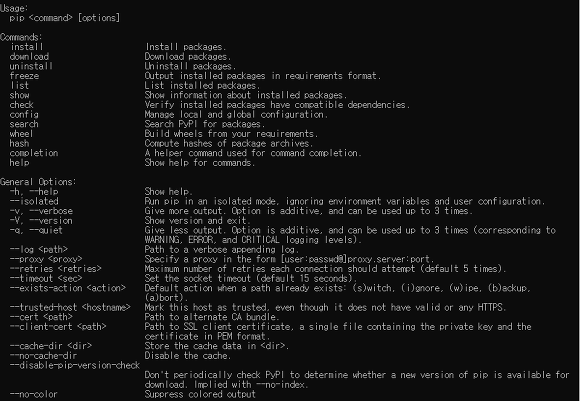 'pip'가 설치되어 있다면, 명령어를 'cmd(명령 프롬프트)'에 입력하게 되면 [그림 1]과 같이 확인할 수 있습니다.